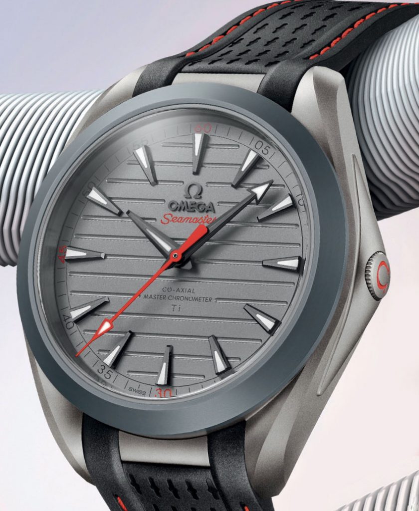 L'”Ultra Light”, come ci riferiamo a questo orologio Omega replica, anziché con il suo nome completo, pesa solo 55 grammi con il suo cinturino in tessuto nero. Secondo la nostra bilancia di precisione, il cinturino in caucciù con chiusura pieghevole in titanio fa salire il peso a 76 grammi. A titolo di confronto, il Seamaster Planet Ocean con cassa in titanio, lunetta in ceramica e cinturino in caucciù pesa 104 grammi, ovvero circa un terzo in più. Si tratta di un confronto valido poiché l’Ultra Light è realizzato esattamente con gli stessi materiali del Planet Ocean, mentre non esistono modelli di Aqua Terra paragonabili (a parte un paio di versioni GoodPlanet). Il titanio è il materiale principale utilizzato per la cassa dell’Ultra Light. Non si tratta di un titanio qualsiasi: una lega nota come Gamma Titanium è utilizzata per la sezione centrale, l’anello per il fondello filettato in vetro zaffiro e la corona. Si tratta di una novità assoluta per le repliche Omega.